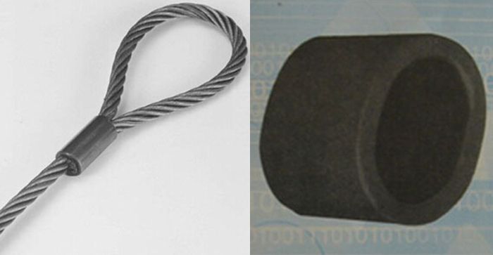 ![]() | ?應用于折回鋼絲繩 ?特殊處理的鋼材 ?具有良好的低溫韌性 ?當對其擠壓時,具有良好的抗開裂性(等于或 超過不銹鋼套) ?具有良好的擠壓性能 ?產品表面可以打印標識 |